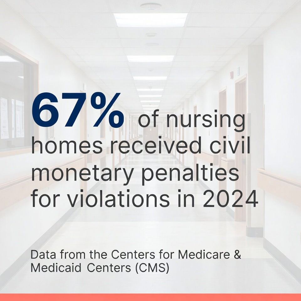 Data from the Centers for Medicare & Medicaid Services (CMS) show that in 2024, 67% of nursing homes received civil monetary penalties for violations, down slightly from 73% in 2023. A 2025 Office of Inspector General report found nursing homes failed to report 43% of falls with major injury and hospitalization among Medicare residents. Oversight remains uneven: The federal government regulates nursing homes strictly but leaves the roughly 30,000 assisted living facilities to states, many lacking robust standards.
