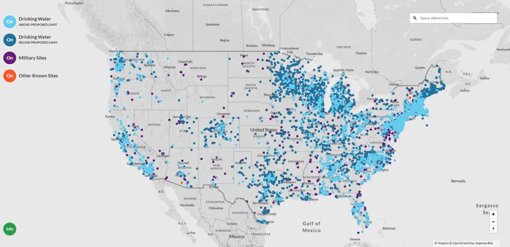 See the widespread impact of PFAS contamination on this interactive map from the Environmental Working Group. If your community is affected, you may have legal options.